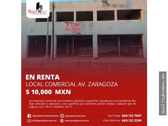 Se renta local comercial, con excelente ubicación y superficie, ubicado por una avenida de alto flujo vehicular y peatonal y una superficie que permitirá puedas instalar cualquier tipo de negocio. Con 120 m2.